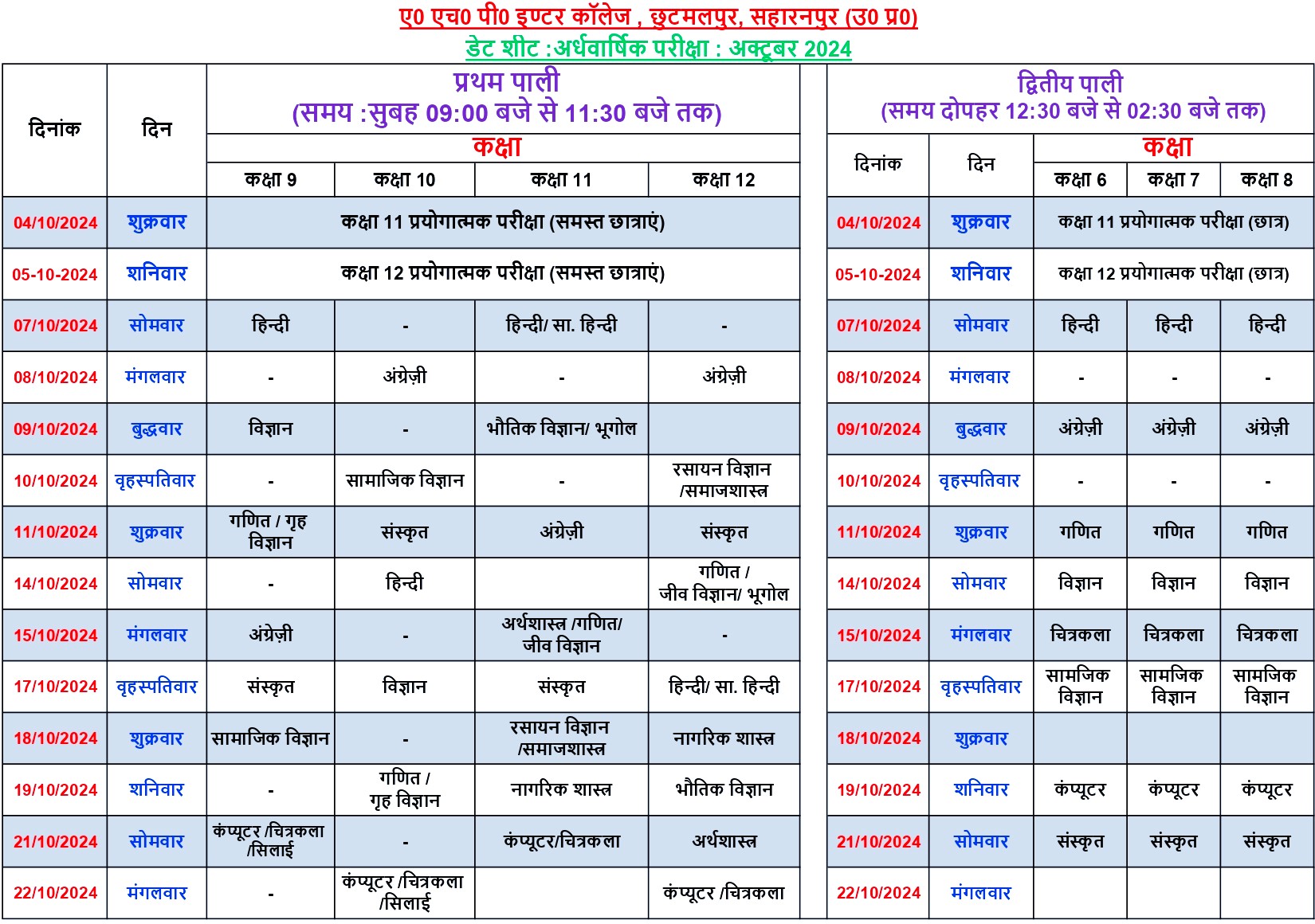 • 07-Oct-2024 : अर्धवार्षिक परीक्षा प्रारम्भ |