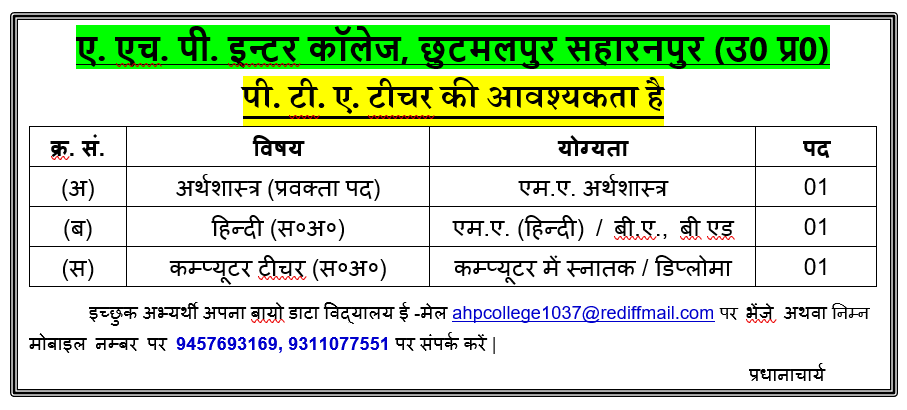 AHP INTER COLLEGE, CHHUTMALPUR