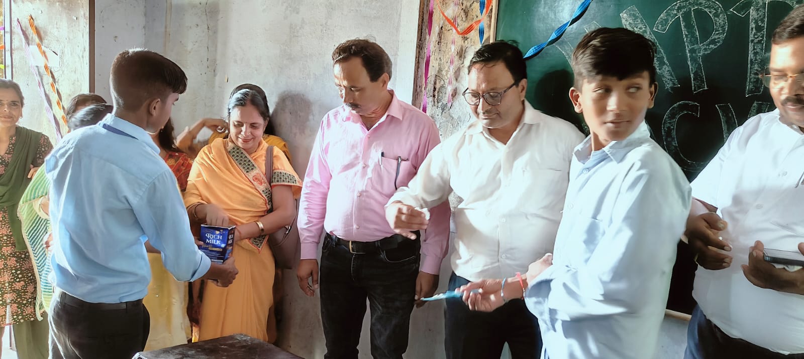 बोर्ड रिजल्ट 2024: प्रबंधक महोदय द्वारा होनहार छात्र/ छात्राओं को मिठाई वितरण समारोह